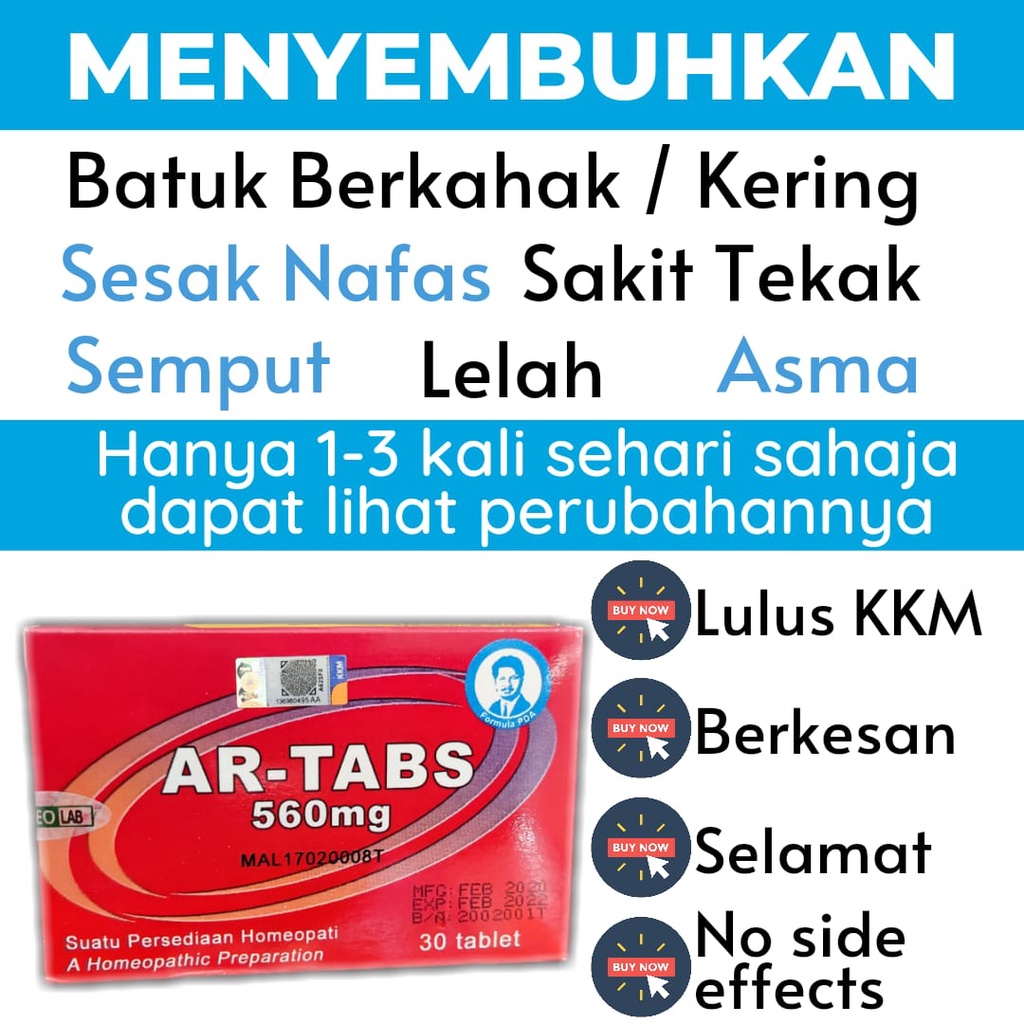 Asmakur Ar Tabs Batuk Asma Ubat Asma Lelah Semput Sakit Tekak Shopee Malaysia
